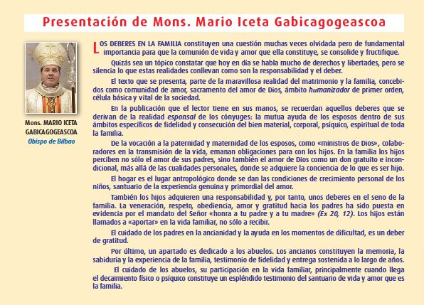 Se lo he mostrado al obispo de Bilbao, monseñor Mario Iceta, nuevo Presidente de la Subcomisión de Familia de la Conferencia Episcopal Española y, por lo tanto, una gran autoridad en la materia y él me ha animado mucho, diciendo que está seguro de que su difusión hará mucho bien… y ha tenido la gentileza de revisarlo y enviarnos una excelente presentación.